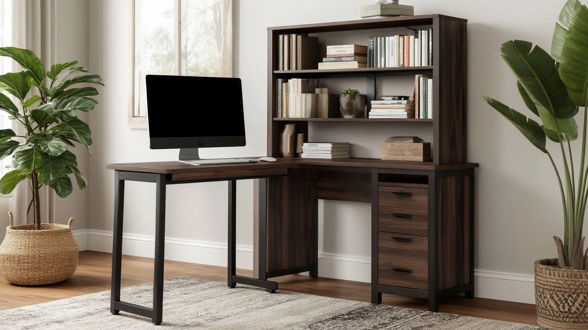 Насыщенные оттенки дерева, такие как орех или дуб, в сочетании с черными или стальными элементами, создают гармоничное сочетание, которое легко вписывается в любой интерьер. Это позволяет столу не только выполнять свои функциональные задачи, но и служить настоящим украшением вашего рабочего пространства. Например, если у вас есть открытые полки или стеллажи, вы можете дополнить их аксессуарами, которые подчеркнут стиль лофт — металлическими ящиками, стеклянными вазами или даже растениями в горшках.