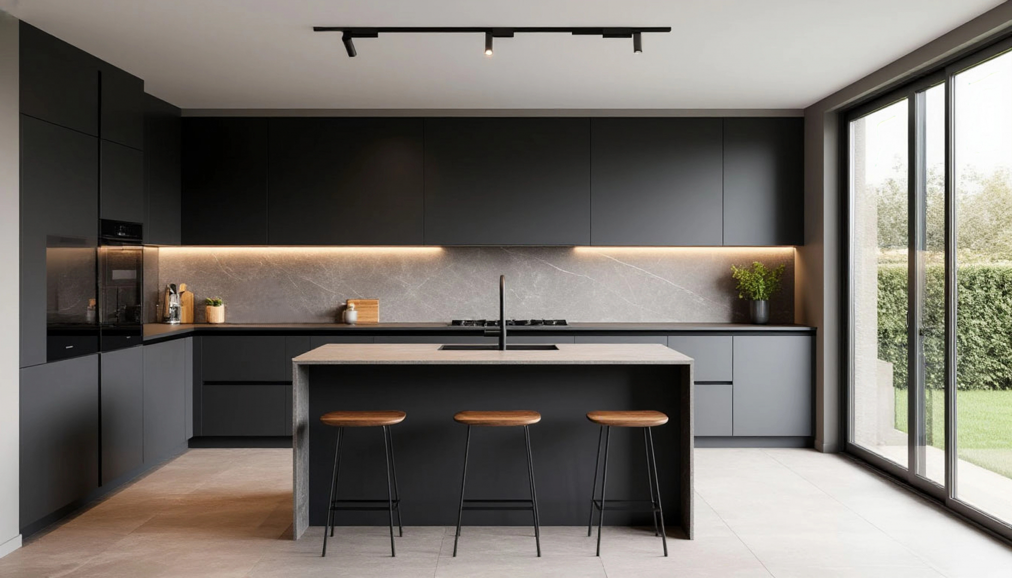 Кухня "Нуарель" идеально вписывается в современные интерьеры — будь то городская квартира в стиле лофт, дом с панорамными окнами или уютное пространство в духе сканди. Она универсальна и при этом уникальна. Цвет графита делает её нейтральной основой для множества решений: рядом с ней прекрасно смотрятся как тёплое дерево, так и холодный металл, как прозрачное стекло, так и белый мрамор. "Нуарель" легко адаптируется под ритм жизни, под настроение, под освещение, под владельца.