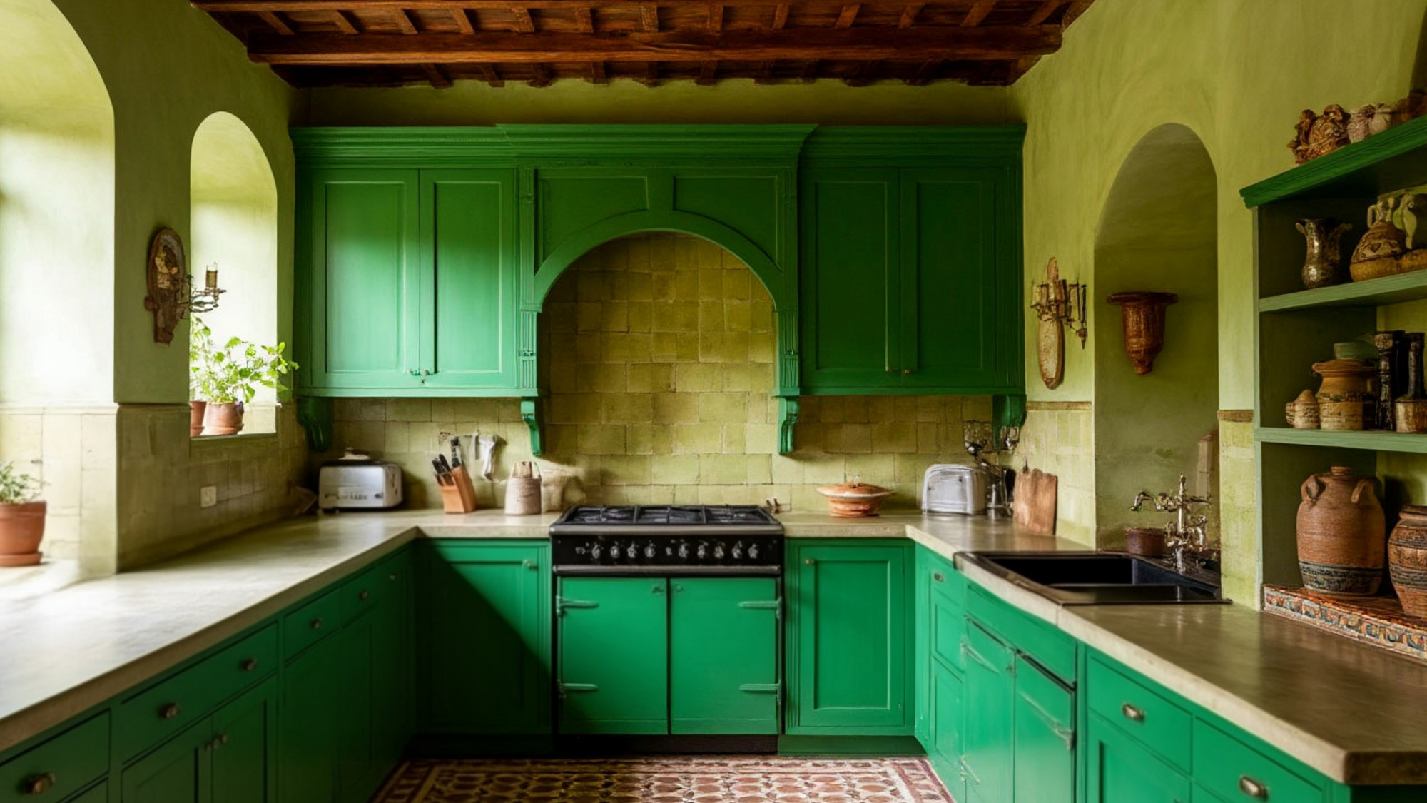 Зелёный цвет в интерьере кухни "Сильва" играет важную роль. Он ассоциируется с природой, умиротворением и свежестью, способствует расслаблению и созданию уютной атмосферы. Это особенно важно для кухни, где семья проводит много времени, общается и готовит пищу. В сочетании с каменными поверхностями и декоративными элементами зелёный оттенок усиливает впечатление римского величия и одновременно наполняет интерьер живостью. Кухня в зеленом цвете становится не просто функциональной зоной, а настоящим центром дома, где царит гармония и спокойствие.