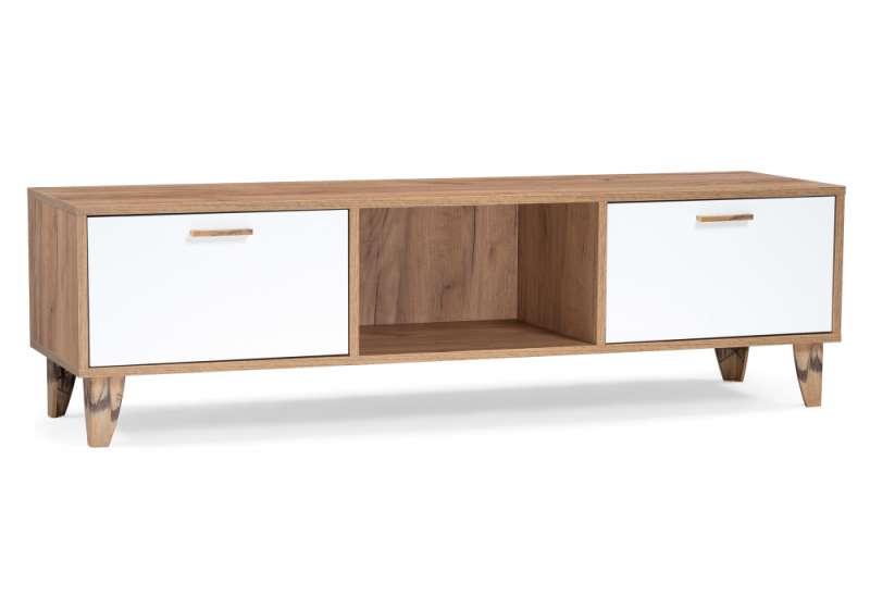 ТВ-тумбы Эго Т-3 на ножках дуб крафт золотой / белый глянец (145x40,4x41,6).