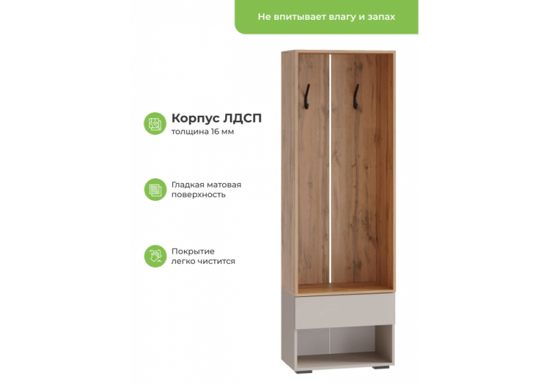 Прихожая Роут 0,6 м кашемир / дуб вотан (60x37,3x185,6).