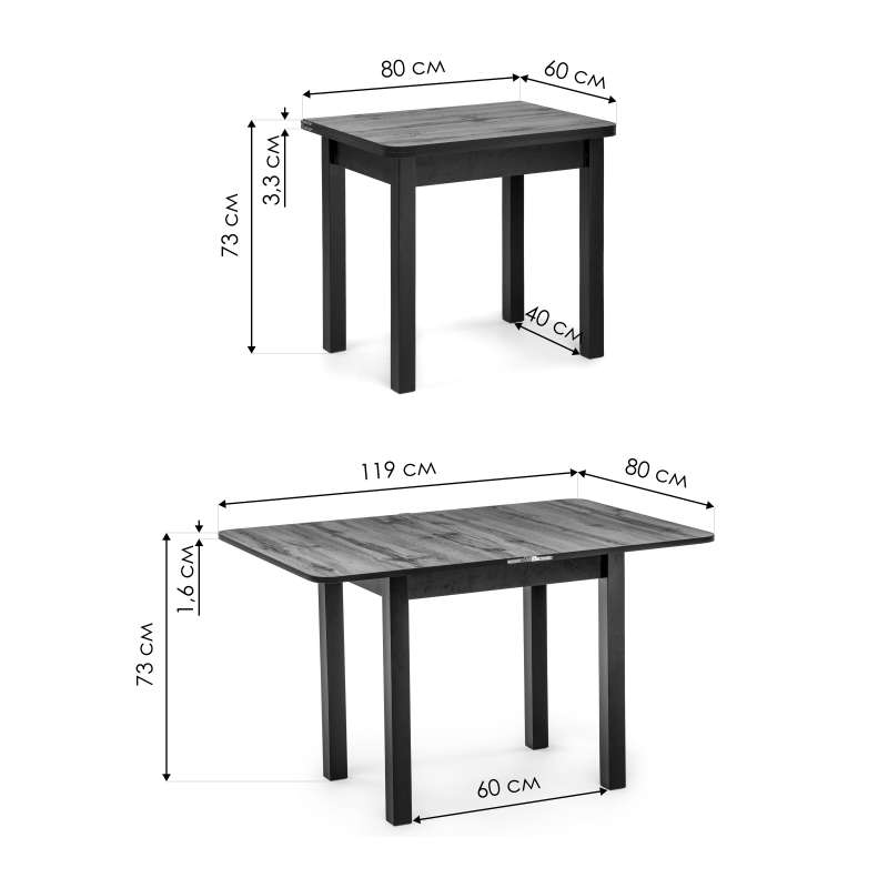 459661 Энлей 60(119)х80х76 черный / дуб вотан (60x75).