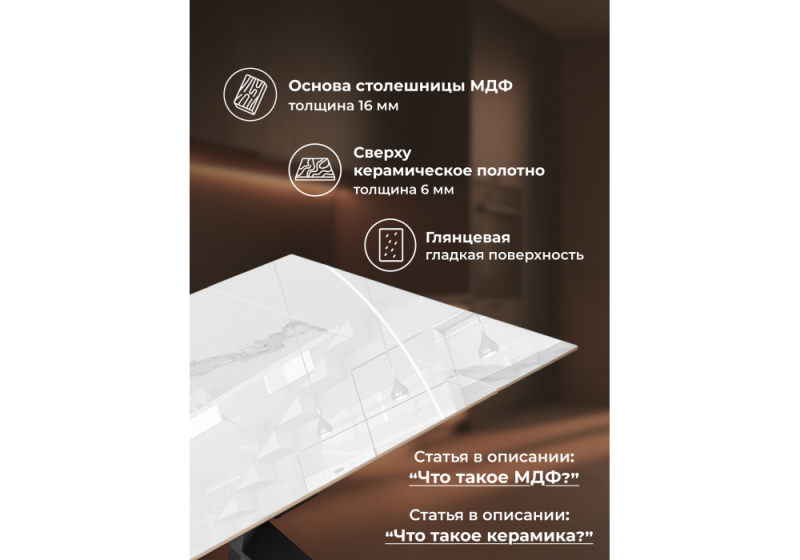 Керамический стол Хилбри 140(200)х80х76 statuario cara / черный (80x76).