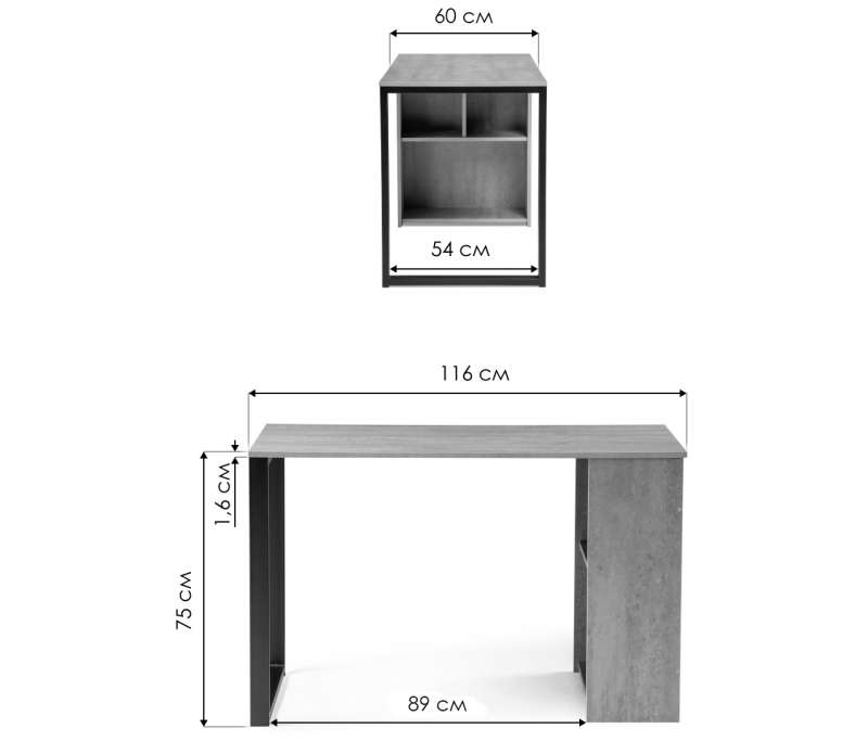 Толщина столешницы: 1,6 см.