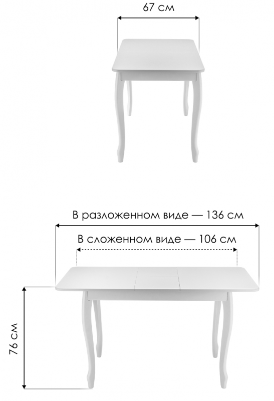 Длина стола в разложенном виде: 136 см.