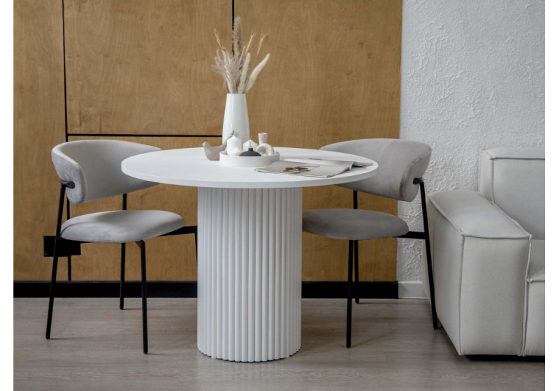 Стол обеденный Барел" – стиль и надежность в каждой детали 110х110 см – оптимальное пространство для комфортного размещения 5 человек. Столешница: - Толщина 22 мм из прочного МДФ – устойчивость к нагрузкам и долговечность. (см. статью: Что такое МД