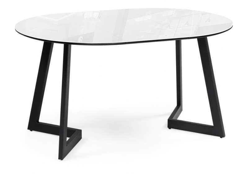 Стол стеклянный Алингсос 100(140)х100х76 белый / белая шагрень / черный кварц (100x76).