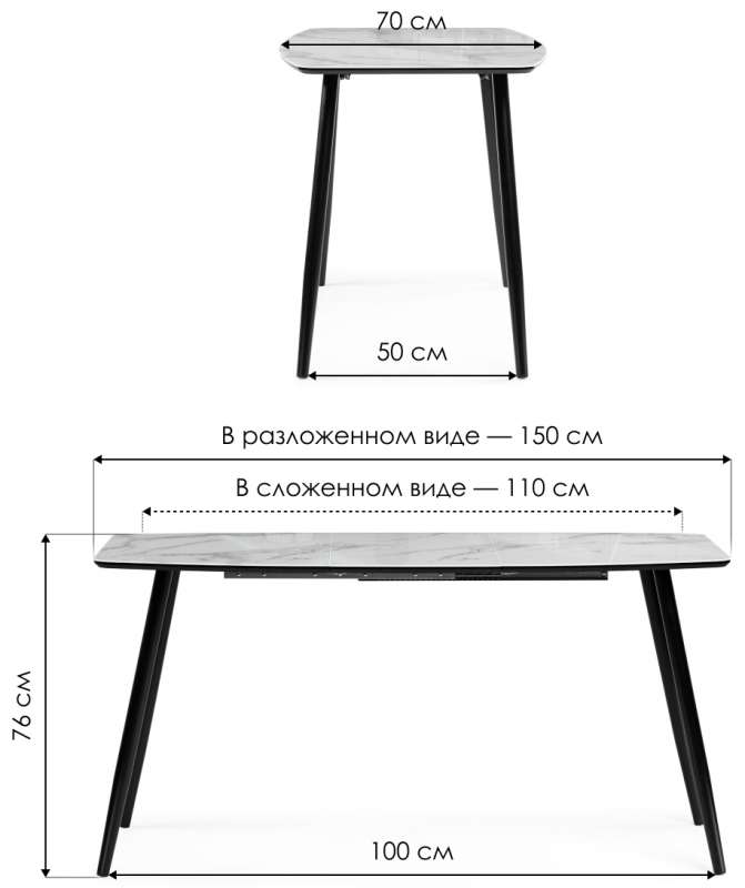 Стол стеклянный Эмма 110(150)х70х76 вставка стекло / черный / черная шагрень (70x76).